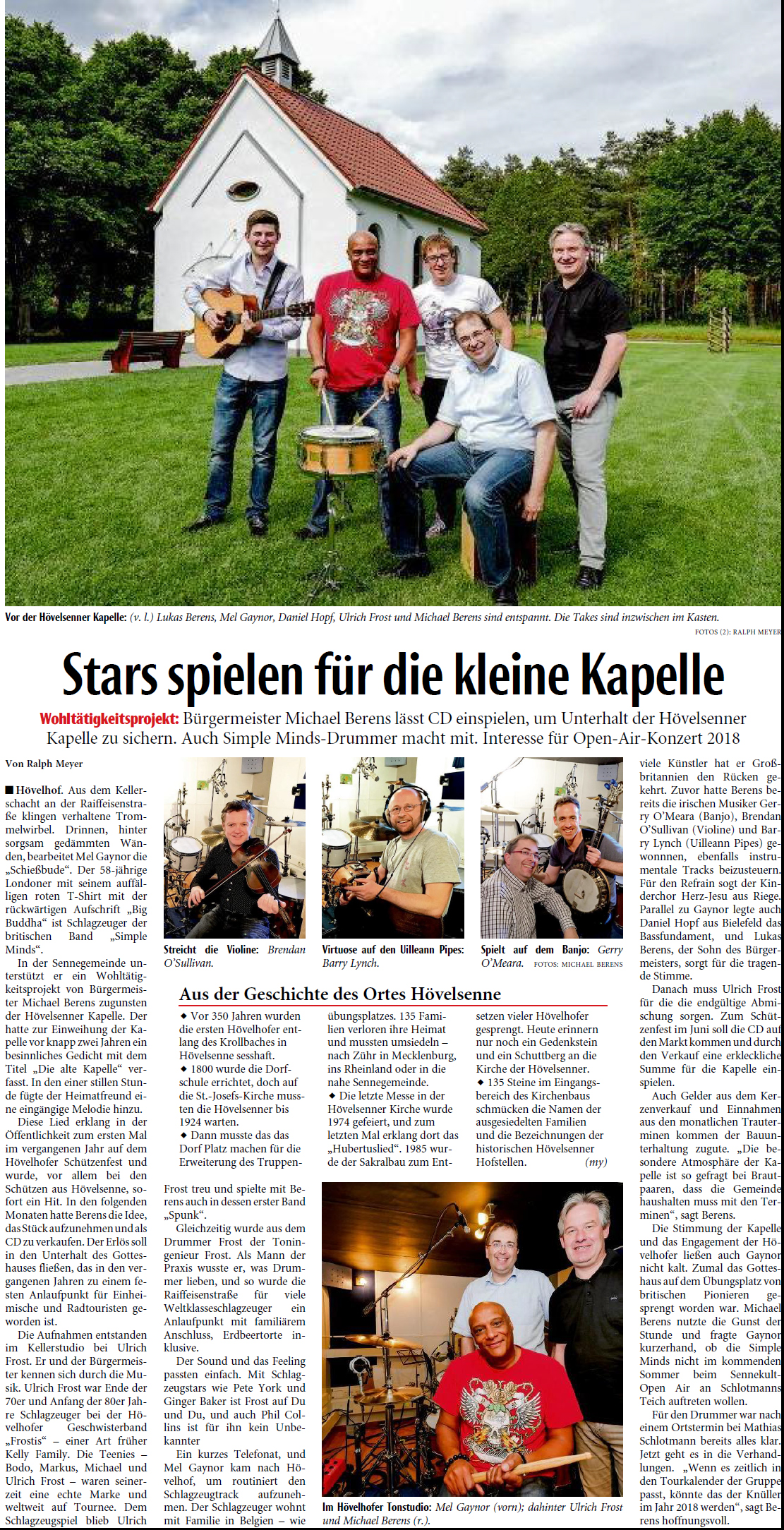 Stars spielen für die kleine Kapelle November 1, 2017 Puttkers Uncategorized Neue Westfälische vom 14.06.2017 Suchen nach: Suchen Neueste Beiträge Video „Die kleine Kapelle“ am Originalschauplatz Die letzte Messe Mel Gaynor ist „Kopf des Tages“ Simple-Minds-Drummer veredelt Song Stars spielen für die kleine Kapelle Archive Februar 2020 Januar 2020 November 2017