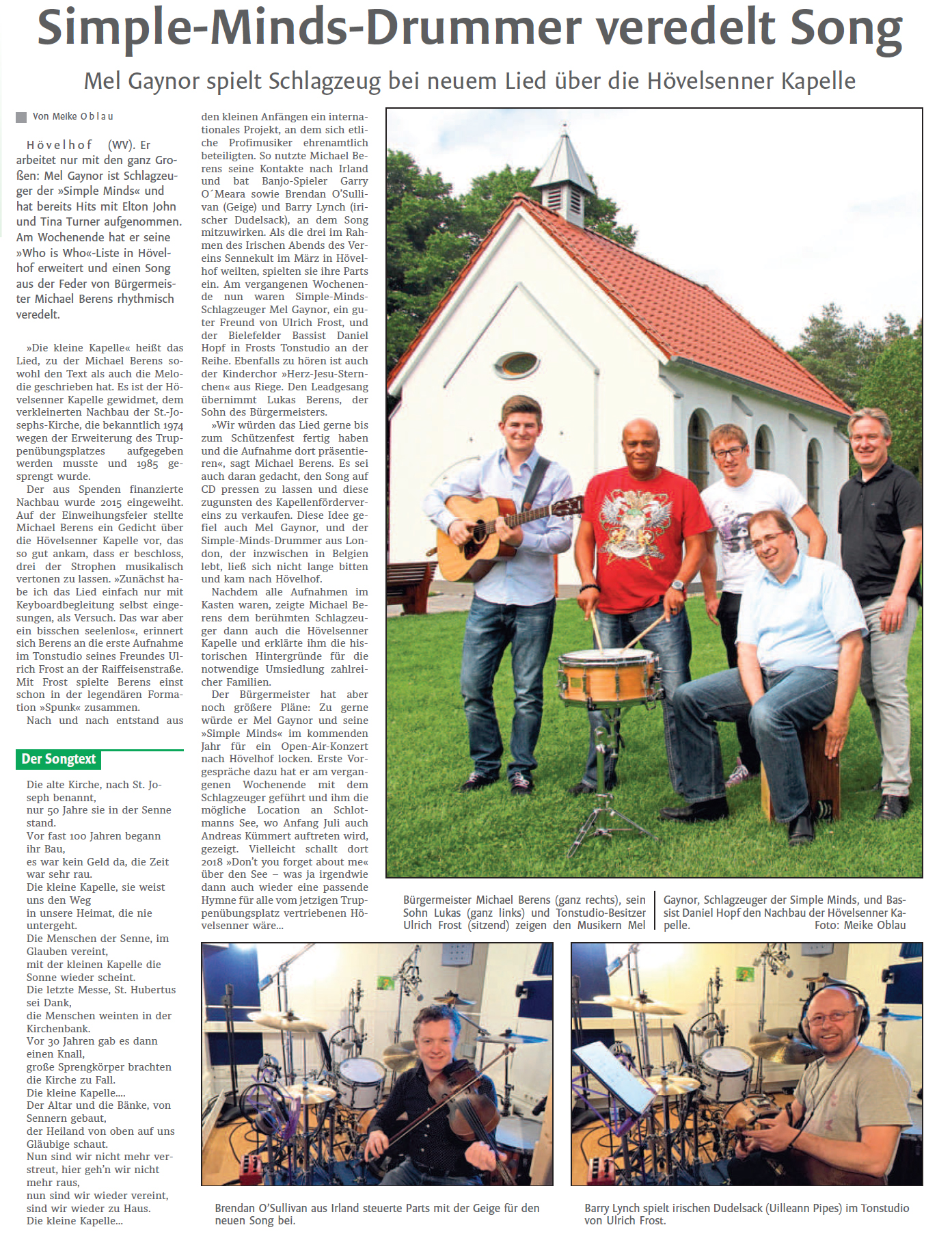 Simple-Minds-Drummer veredelt Song November 1, 2017 Puttkers Uncategorized Westfälisches Volksblatt vom 14.06.2017 Suchen nach: Suchen Neueste Beiträge Video „Die kleine Kapelle“ am Originalschauplatz Die letzte Messe Mel Gaynor ist „Kopf des Tages“ Simple-Minds-Drummer veredelt Song Stars spielen für die kleine Kapelle Archive Februar 2020 Januar 2020 November 2017